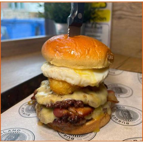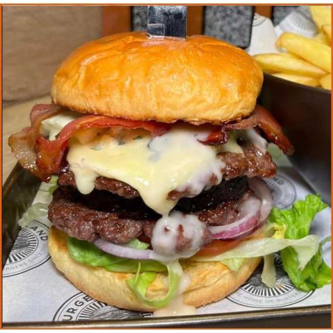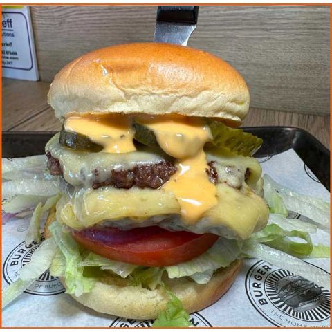 Classic Cheese gluten free bun2x Beef Patty, Monterey Jack Cheese, Lettuce, Beef Tomato, Red Onion, Pickle and Burger Sauce