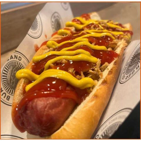 Original DogGerman Hot Dog, Crispy Onions, Ketchup & Mustard -