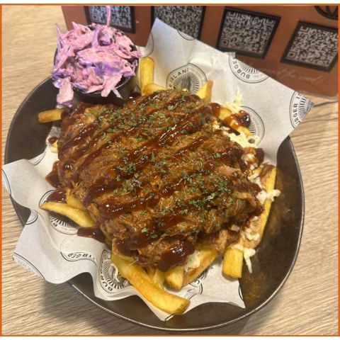 Pulled Pork FriesPulled Pork, Mozzarella, House Slaw & Bbq Sauce -