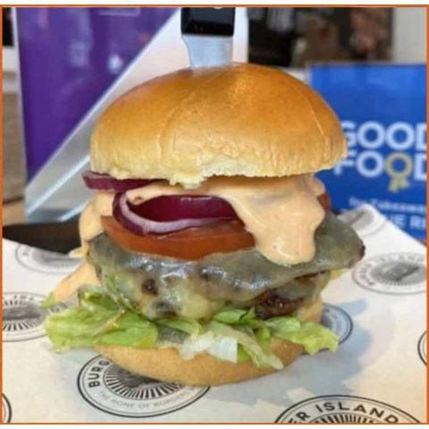 Classic Cheese BurgerBeef Patty, Monterey Jack Cheese, Lettuce, Tomato, Onion, Pickles & Island Sauce -
