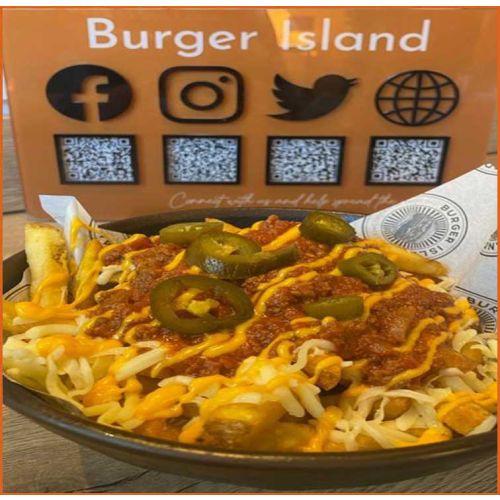 Chilli FriesHouse Chilli, Mozzarella, Jalapenos & Cheese Sauce -