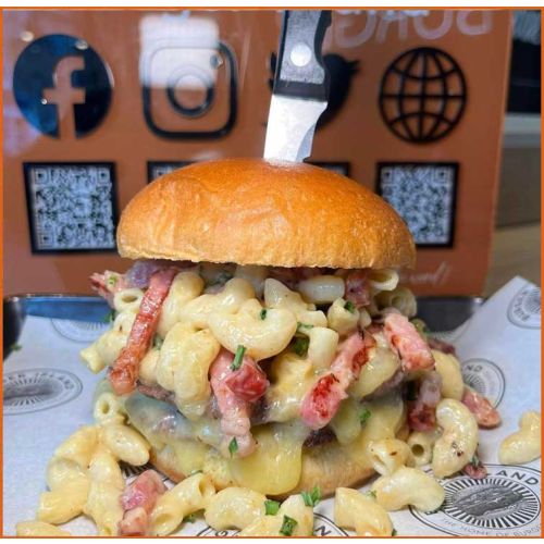 Mac & Cheese Burger(Beef Or Chicken) Monterey Jack Cheese, Homemade Mac & Cheese -