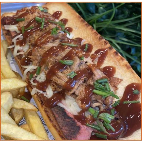 Pulled Pork DogGerman Hot Dog, Mozzarella, Pulled Pork & Bbq Sauce -