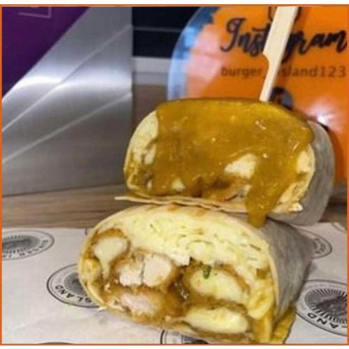 Cheeseburger WrapBeef Patty, Chips, Mozzarella, Lettuce, Tomato, Onion, Pickles & Island Sauce